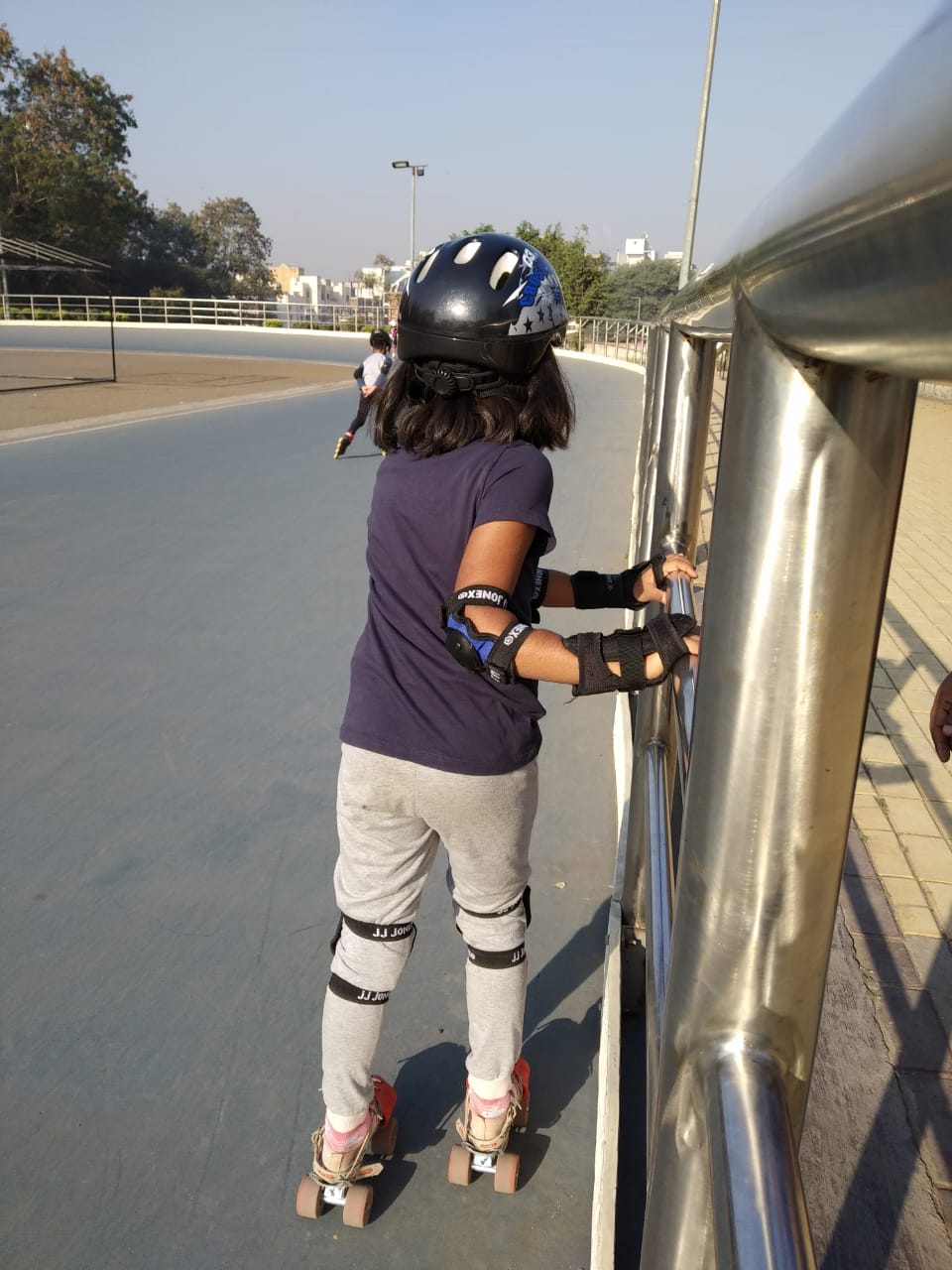Not even half the lap was done and N fell down. Just slipped - no reason at all. Hota hai...life hai! I kept shooting the video in the hope that she will get up n start skating but NOO. She was embarrassed... felt horrible...hurt and ANGRY at the same time. J and I coaxed her to re-tie her skates and keep going but she knew she would reach last as their was only 1 lap. Her coach then came to rescue and urged her to get up and finish the race because that's what a sportsperson does! FINISH! Reluctantly again she got up with slow movements she started going and after a couple of seconds she got in motion. Finished her race! I know she didn't win. But in my heart I did a YESSSS! ✌✌